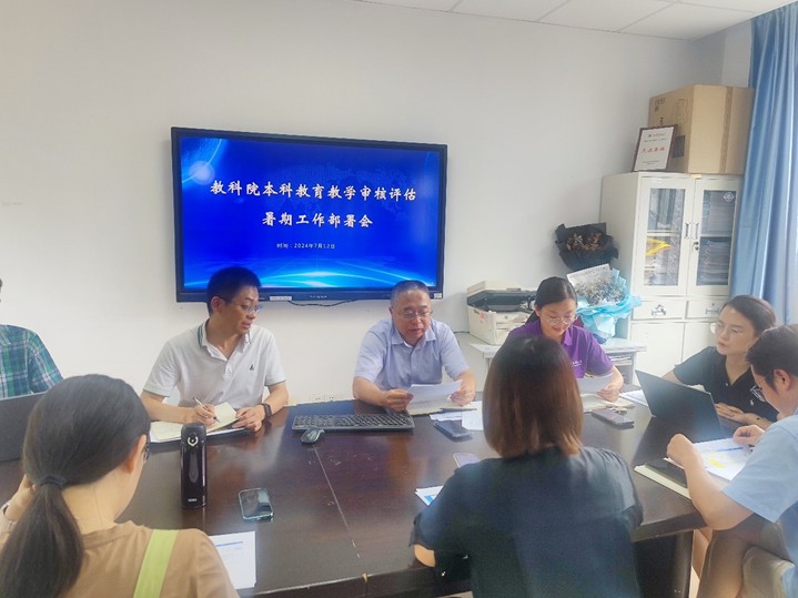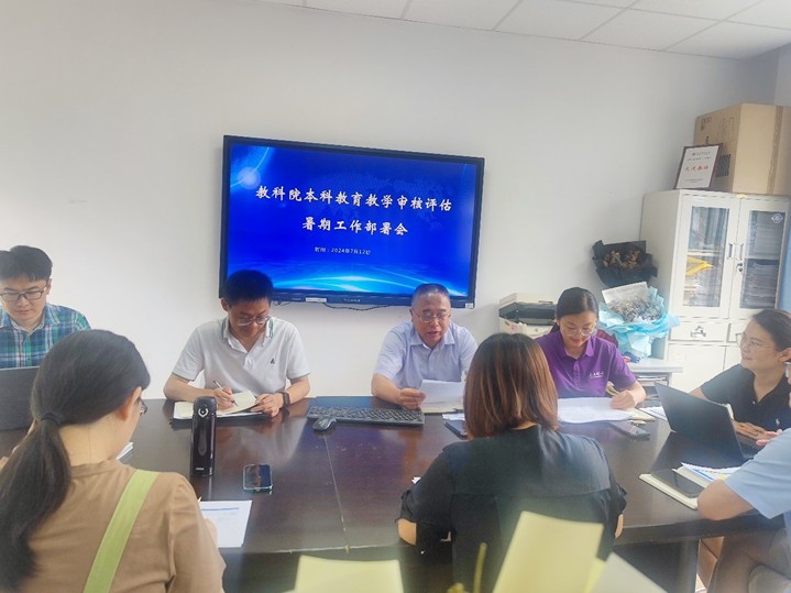 为迎接教育部本科教育教学审核评估,全面推动学院自评自建工作进程,教育科学学院于2024年7月12日下午2:30在学院217办公室召开了审核评估暑期工作推进会。学院党政领导班子、系主任以及教务老师参加了本次会议,会议由张欣书记主持。