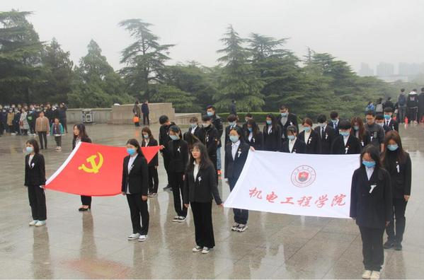 最后,机电学生高举党旗、院旗环绕广场一周瞻仰淮海战役纪念塔,追忆人民英雄丰功伟绩,感恩今天幸福美好生活。