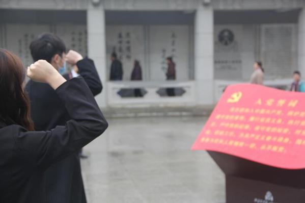 “我志愿加入中国共产党,拥护党的纲领,遵守党的章程,履行党员义务,执行党的决定……”在革命烈士纪念塔前,党员代表丁文杰带领全体学生党员重温入党誓词。铮铮誓言久久回荡,表达了学生党员们“不忘初心、牢记使命”的坚定理想信念,深切缅怀为民族独立与人民解放事业献出宝贵生命的革命先烈。
