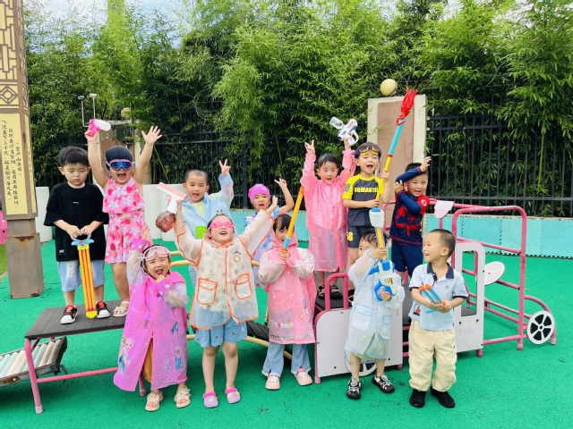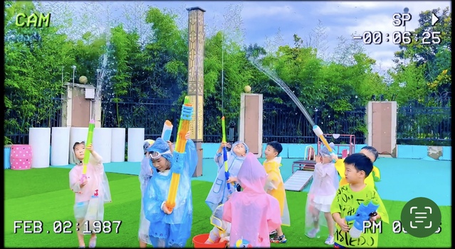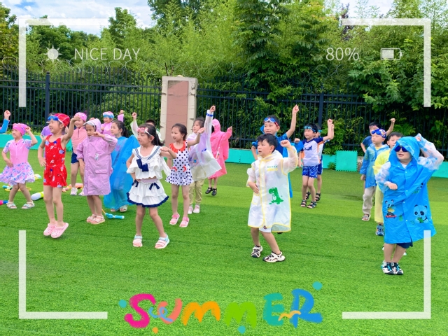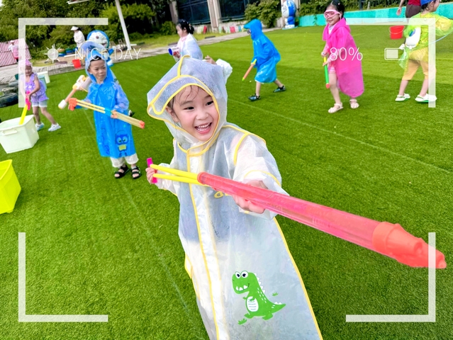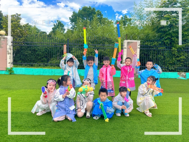 紧接着是孩子们期待已久的“水枪大战”。随着动感的音乐响起,大班的小朋友们率先登场,他们跟随着音乐的节奏,尽情地舞动身体,用水枪向空中喷射出一道道美丽的水花。接着,中班和小班的孩子们也不甘示弱,纷纷加入到这场欢乐的战斗中。孩子们在水花中奔跑、欢笑,尽情享受夏日的清凉和游戏的快乐。