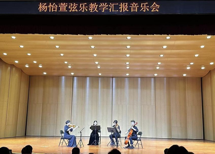 2024年6月28日晚7点,由江苏师范大学音乐学院主办的“杨怡萱弦乐教学汇报音乐会”在马可音乐厅精彩上演。江苏师范大学音乐学院王志军院长,音乐学院党委夏雯副书记,崔飞副院长,郭威副院长,以及音乐学院部分师生、周边地区的弦乐教师和爱好者们共同参加了此次音乐会。杨怡萱老师介绍了此次教学汇报音乐会的主要内容与形式,并对莅临演出现场的领导嘉宾们表示热烈的欢迎。