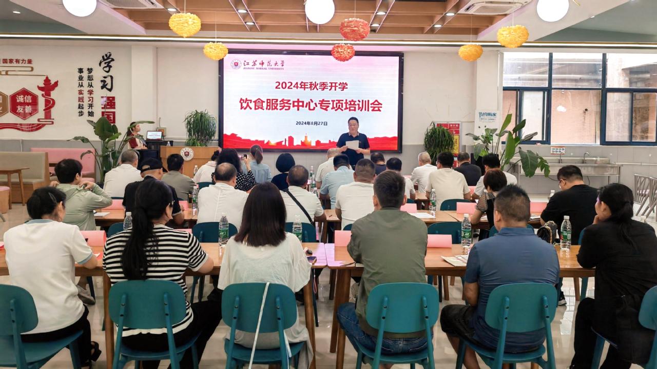 为进一步提升食品安全管理水平,压实各级管理人员职责,筑牢食堂食品安全防线,护航秋季开学“第一餐”,饮食服务中心于8月27日上午开展了管理人员专项培训。此次培训由饮食服务中心陈健强主任主持,共有30名来自不同岗位的管理人员参与。