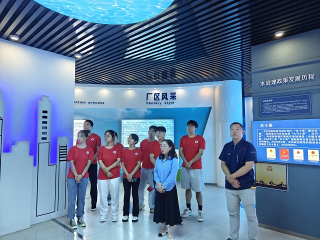 在汉之源水务有限公司付庄水厂,师生们重点参观了解了自来水生产和供应的自动化应用场景以及水资源专用机械制造、污水处理及其再生利用等技术。党员师生们还与水务公司党支部“小红帽志愿者服务队”负责人进行了交流,详细了解志愿服队为空巢独居、孤寡老人、低保户等特殊群体解决用水困难的情况,共同探讨建立专业技能与志愿服务相融合的校企合作志愿服务模式。