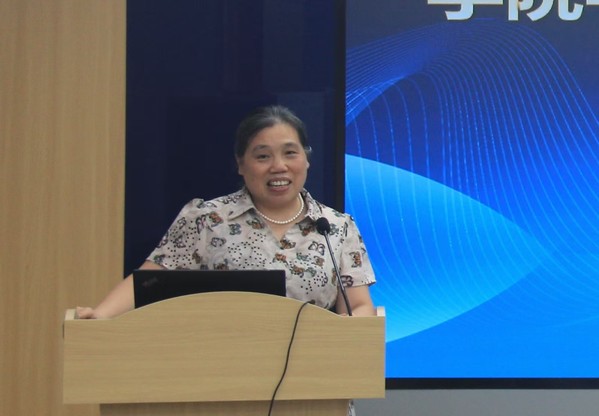院党委书记何莉娜介绍了本次会议的背景意义。希望广大教师充分认识当前面临的形势和挑战,认真参会,深入思考,积极研讨,对标找差,把学习的成果转化为强大的执行力、凝聚力、战斗力和竞争力,凝聚共识,推动发展。
