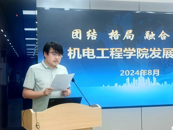 8月27-28日,机电工程学院召开发展研讨会。学院领导班子成员、教授、系书记主任、工会(妇联)主席、对外联络办主任、党政管理人员参加了会议。