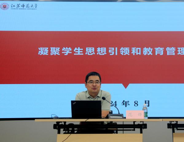学工处处长范锋作了题为“凝聚学生管理和思想引领的合力”的辅导报告。范处长从“我们正在面对的学情”、“我们需要解决的问题”、“我们正在做什么”三个方面,准确分析了当代大学生的思想和行为特点,与参会人员交流了作为专任教师如何助力学生思政、资助、心理等学生工作。
