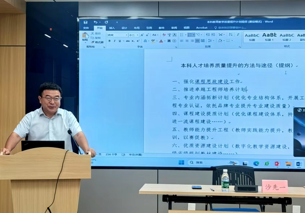 教务部部长沙先一作了题为“本科人才培养质量提升的方法与路径”的辅导报告。沙部长从专业建设、课程建设、协同育人、质量监控等八个方面精细的指导了学院本科人才培养工作。鼓励学院通过工程认证、国家一流专业建设点的建设,积极推进卓越工程师计划项目,切实提高人才培养质量。