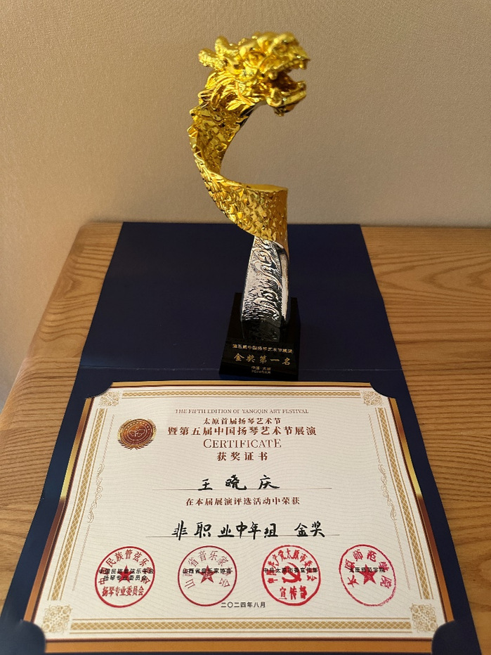 在第五届中国扬琴艺术节这一璀璨舞台上,经过一番紧张而激烈的技艺比拼,我院王晓庆老师从众多才华横溢的参赛者中脱颖而出,勇夺中年组金奖的桂冠,彰显了其深厚的艺术造诣。同时,王老师精心指导的2022级学生齐远红与2023级学生李婕同学,作为选修扬琴的学生,同样不负众望,分别摘得了优秀演奏奖,王老师也荣获了优秀指导教师奖。