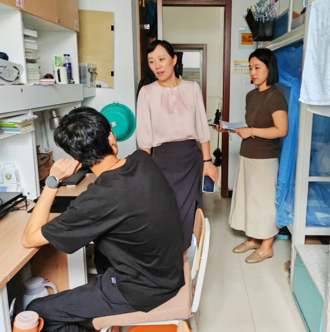 在走访过程中,老师们细致排查了宿舍的安全隐患,提醒同学们严格遵守宿舍安全规定,严禁使用大功率电器和私拉乱接电线等危险行为。对于宿舍内务整理的不足之处,老师们现场提出了整改意见,以实际行动促进改进,防患于未然。