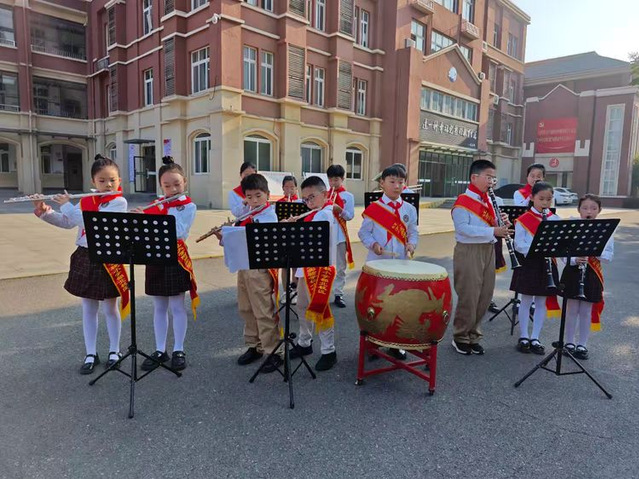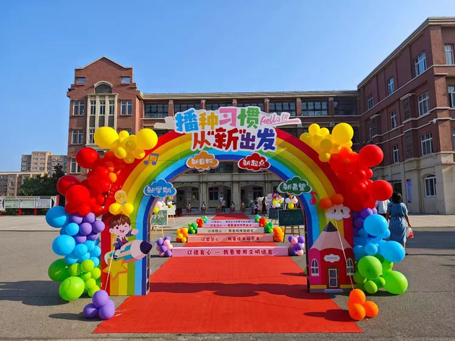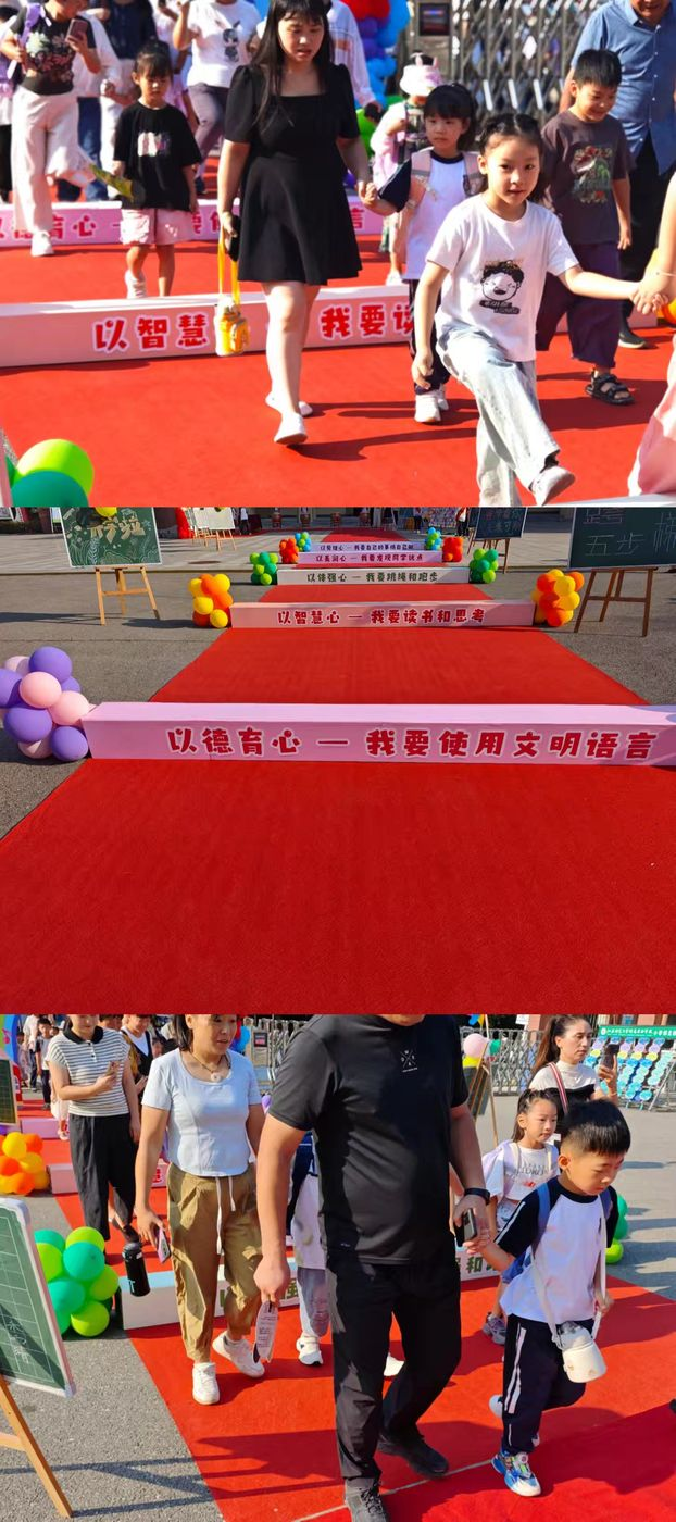 在我校管乐团悠扬的演奏声中,孩子们在家长的陪伴中、老师的引导下,迈着愉快的步伐,眼神中闪烁着好奇与兴奋走入了校园。瞧,小可爱们走上红地毯,依次跨过写有我校五大“好习惯目标”的栏杆,每跨过一栏,都像是在心中种下一颗种子,承诺着将在学校生活的每一天里,努力践行这些美好的品格。这不仅是对孩子们进入新阶段的庆祝,更是对他们未来成长的期许!