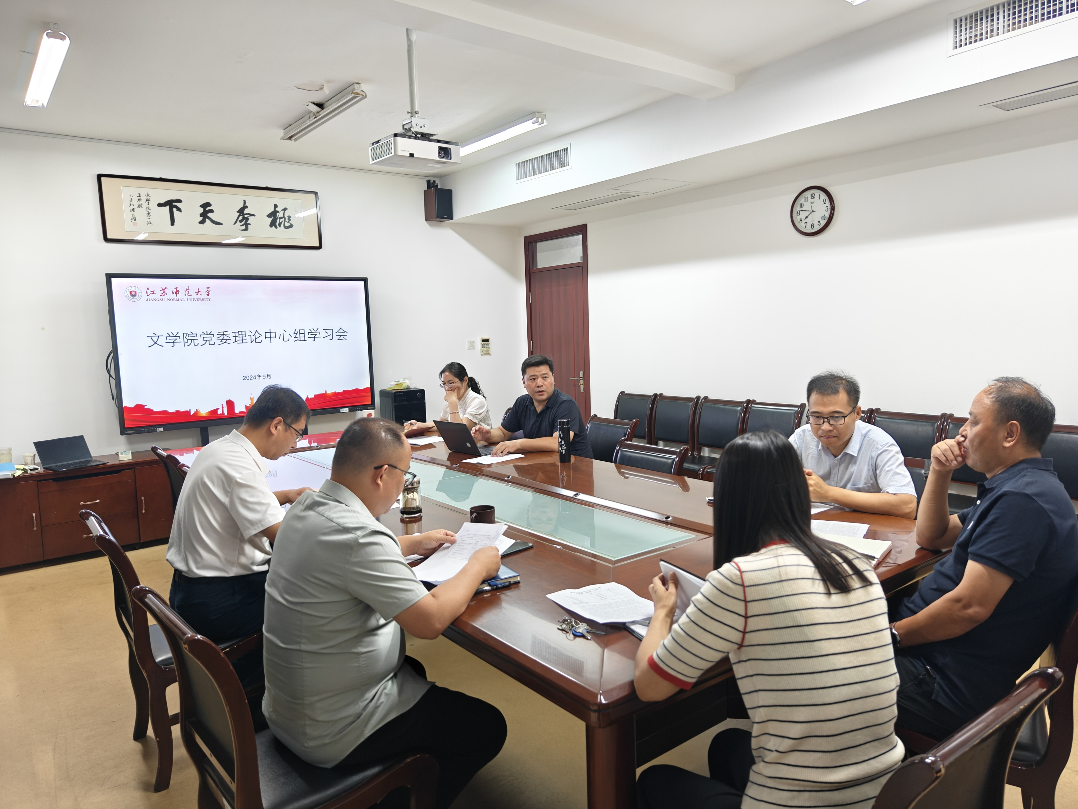 9月2日,文学院党委理论学习中心组举行专题学习会,深入学习领会党的二十届三中全会精神。院党委理论学习中心组全体成员参加学习研讨。