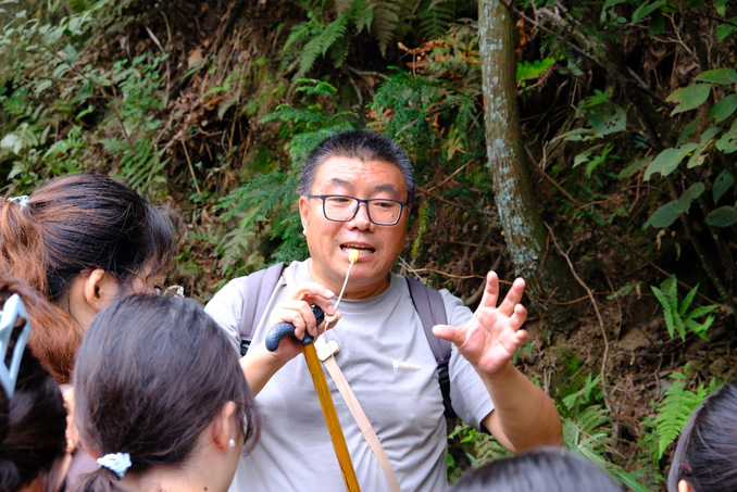 李贺老师从低等和高等植物入手,通过让同学们观察、触摸来了解庐山特有植物的相关特征,了解相关植物的分类单位和特征。