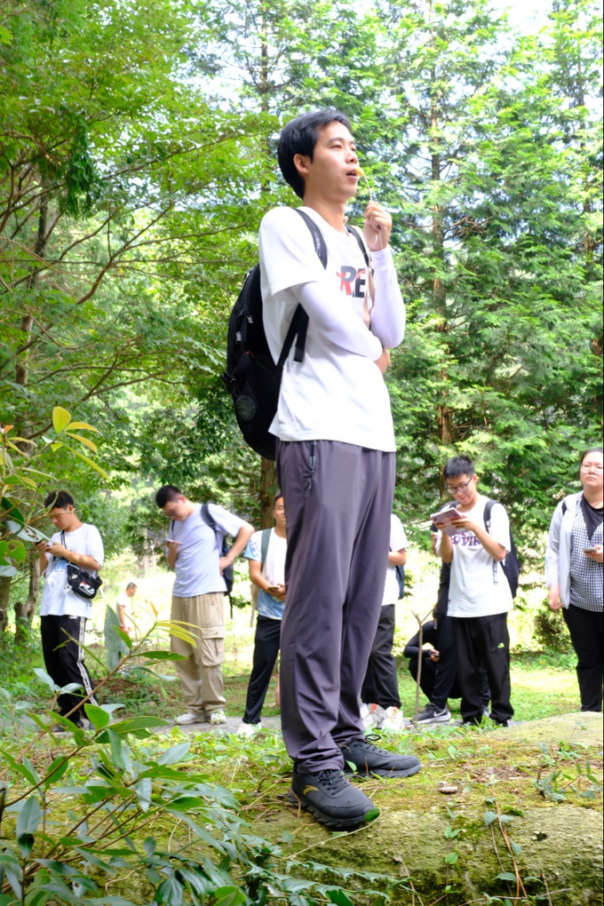 同学们深入庐山腹地,知行合一,对庐山地质地貌、水文气象、土壤组成和生态植被等方面进行了全面深刻的调查研究。同学们通过对黄龙寺附近的典型山地土壤剖面的观察记录,总结了庐山土壤垂直分布特征;通过对锦绣谷褶皱和断层的识别,推测了河流地貌的成因;通过对飞来石的观察,辨析了冰川沉积说和泥石流沉积说。