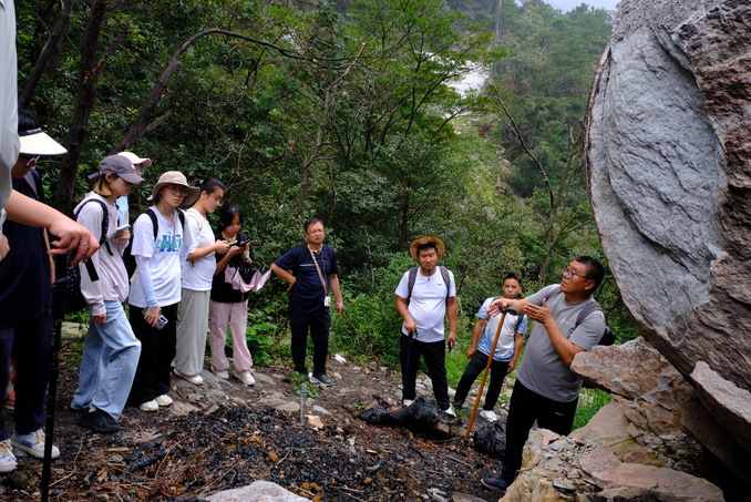 葛兆帅老师对含鄱口岩石的风化和节理做了细致的讲解,并带同学们亲眼见证了重力地貌。