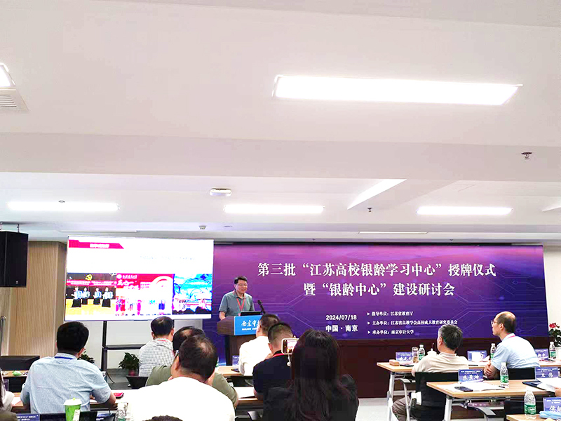 近日,江苏省第三批“江苏高校银龄学习中心”(简称“银龄中心”)授牌仪式暨“银龄中心”建设研讨会在南京审计大学举行。我院党总支书记朱景坤教授出席活动,并以《依托高校资源优势为银龄学习托起一片天》为题作交流发言。他表示,2022年9月,江苏师范大学获江苏省首批“银龄中心”认定后,更是依托高校主体,紧锣密鼓,谋篇布局,精准发力,全方位地为“银龄中心”建设助力和赋能。