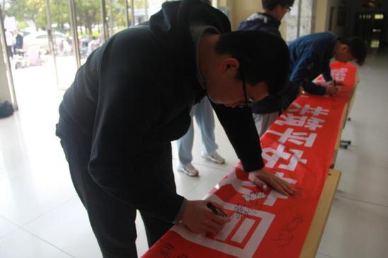 班会结束后,全班同学在田家炳工学院一楼大厅开展了“你我同心协力,共筑平安校园”主题横幅签字活动。