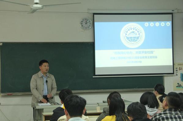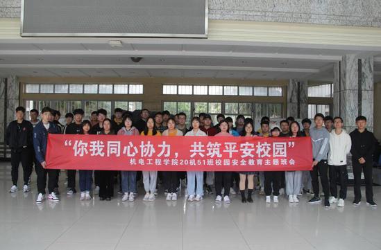 按照我校“校园安全与交通秩序教育”主题班会布置会议工作要求,为切实增强学生安全防范意识,引导学生文明健康有序出行,共筑和谐平安校园,4月14日下午,机电工程学院20机51班在12#305A举办“你我同心协力,共筑平安校园”安全教育主题班会。校学生工作处副处长周显洋、院党委副书记陈晓林、20机51班同学参加了本次班会。班会由班主任丁永剑老师主持。