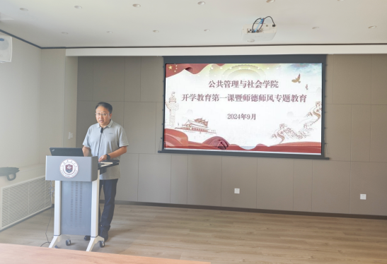 9月4日下午,公共管理与社会学院在16号楼500报告厅召开全体教职工会议,开展了开学教育第一课暨师德师风专题教育活动,全体教职工参加会议。