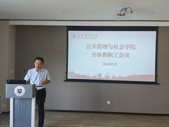 会议伊始,院党委书记吴迪传达了校全体中层干部会议精神,并带领全体教工深入学习了《中共中央 国务院关于弘扬教育家精神加强新时代高素质专业化教师队伍建设的意见》《江苏师范大学教师师德失范行为处理暂行办法》等文件精神,引导教职工自觉践行教育家精神,模范遵守宪法和法律法规,依法履行教师职责,自觉捍卫教师职业形象,在理论与实践中涵养高尚师德和教育家精神。