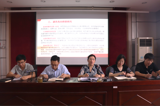 会上,戚书记结合近期违反师德师风的典型案例,带领全体教师再次学习了《江苏师范大学教师职业规范》《江苏师范大学教师师德失范行为处理暂行办法》等文件,进一步强调了教师违反师德的严重后果和学校学院对师德失范“零容忍”的坚定态度,要求全体教师模范遵守新时代教师职业行为准则,自觉捍卫教师职业尊严,始终做学生追梦路上的点灯人和守护者。