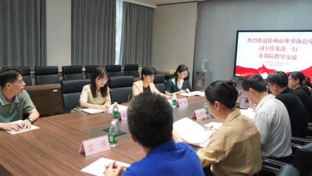 9月6日,徐州市外事办公室副主任朱静一行4人来我院考察交流,学院领导班子相关成员、国际合作交流处处长张蓊荟、副处长李丹参加了座谈。会议由院长于涛主持。