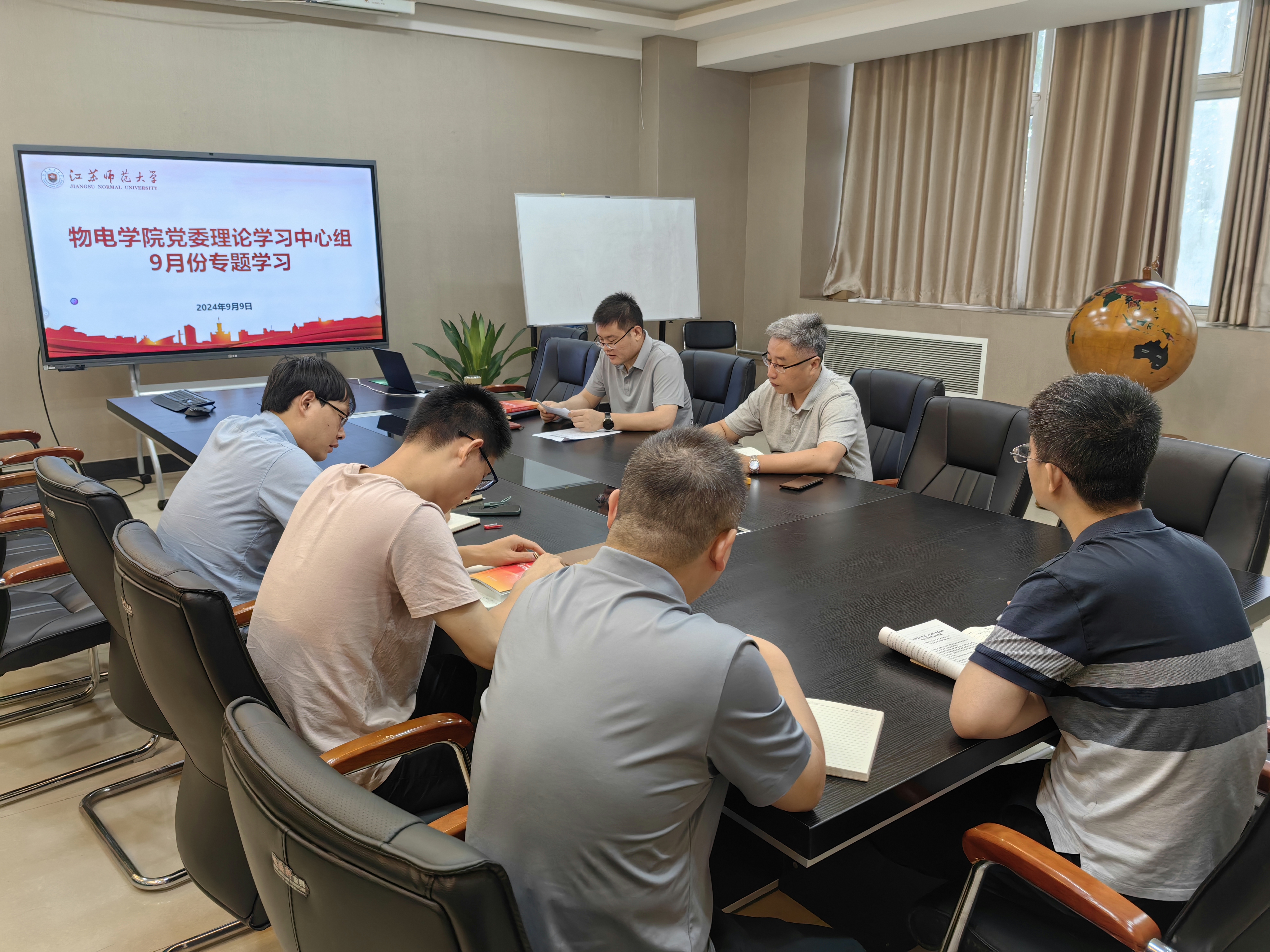 9月9日上午,物电学院党委理论学习中心组在学院325会议室开展9月份专题学习,重点围绕“深入学习领会党的二十届三中全会精神”和“深入学习领会习近平总书记关于推进中国式现代化的重要论述”两个主题进行学习研讨。物电学院党委理论学习中心组成员参加学习,本次学习由李印威院长领学。
