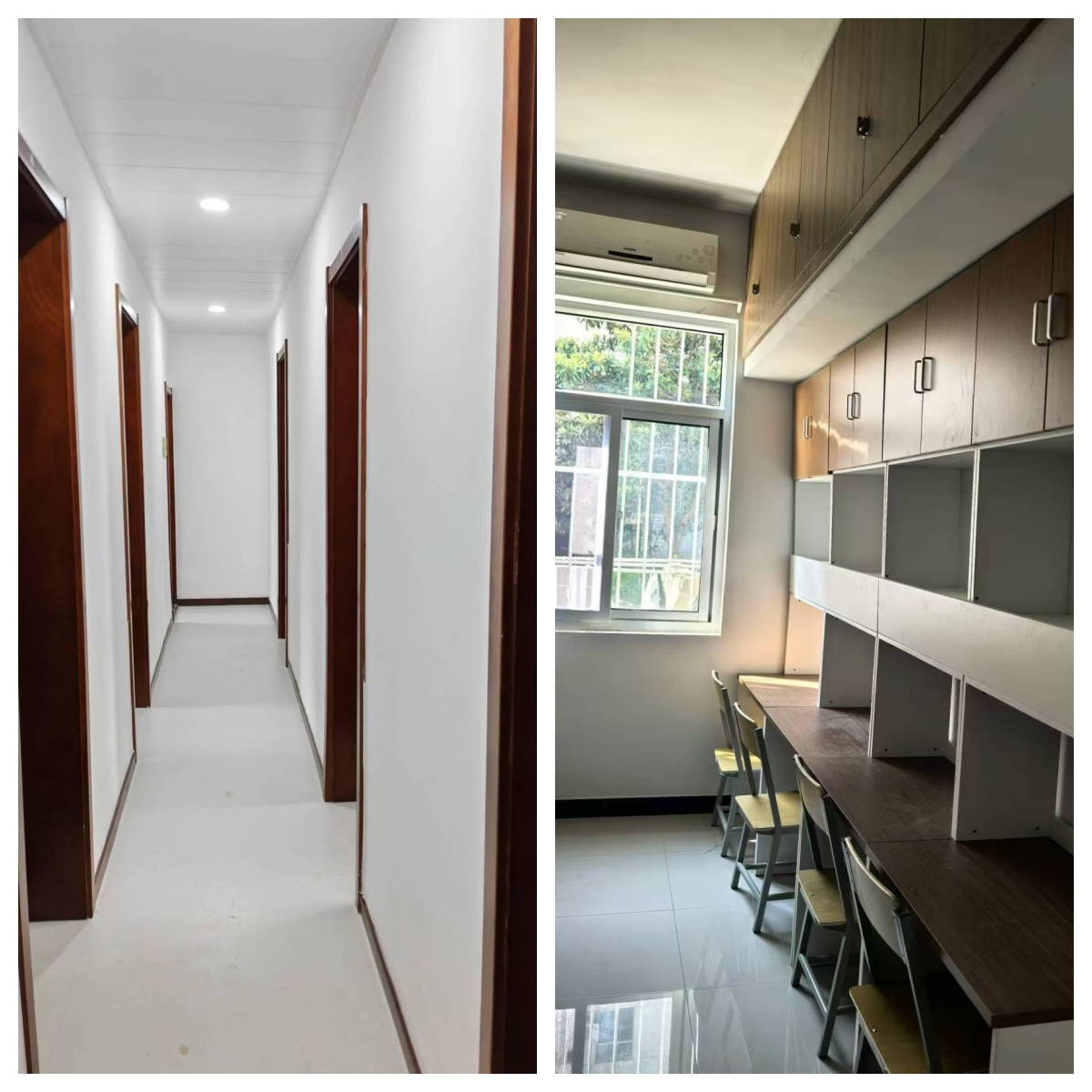 保障基础设施,提供舒适环境 为确保为2024级学生提供整洁、舒适、优美的住宿环境,清洁房间卫生、维修设施设备等成了学生公寓假期工作的重头戏,员工们在假期放弃个人休息时间,战高温,斗酷暑,挥汗如雨,不辞辛苦,所有工作均按计划有序进行。截止开学前,学生公寓顺利完成泉山校区1100间毕业生房间粉刷、维修、清扫工作,清洗保养洗衣机254台、开水器67台,擦拭新生房间空调1550余台,配置新生卧具832套。同时配合后管处完成6栋宿舍楼共计600个房间的整体改造,保证学生们入住舒适、生活安心。