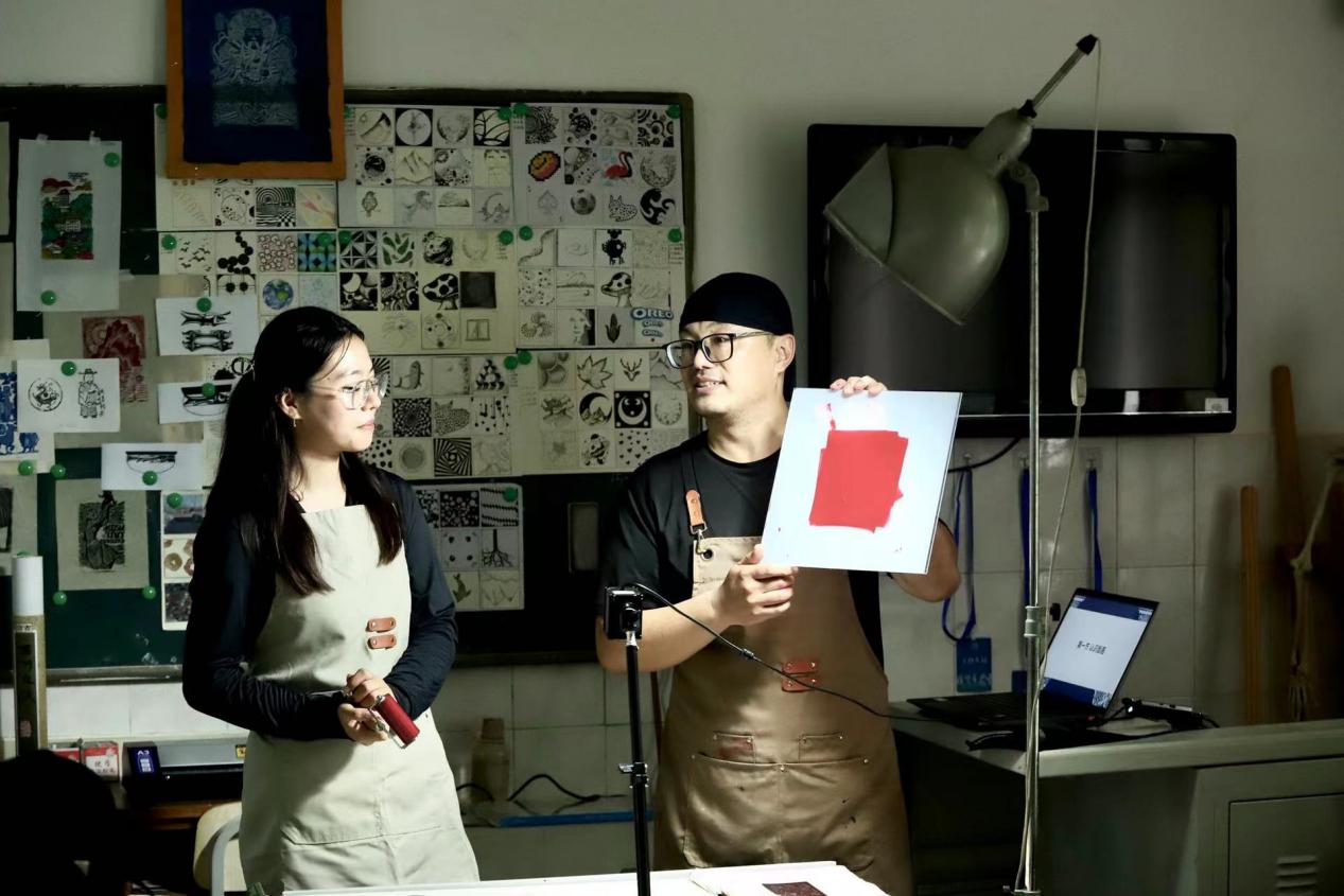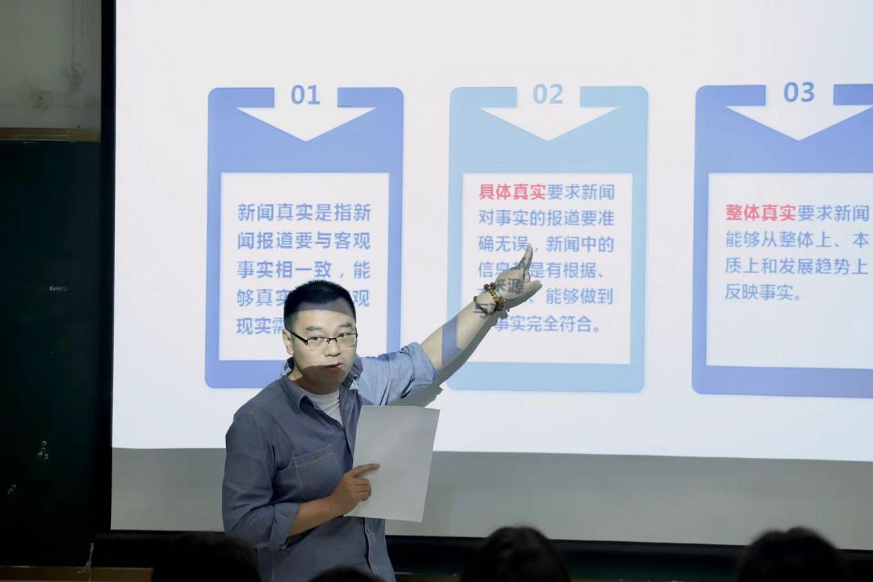 赵轩老师执教的是理论课程《电影理论》中的“电影符号学”一课。他深入浅出地剖析了第一电影符号学对电影本质的深刻思考及其对电影研究领域的广泛拓展。赵老师语言生动,巧妙地将电影的类语言属性娓娓道来,使原本抽象的理论知识变得易于学生理解,激发了学生的学习兴趣。李翔老师示范的是《新闻学概论》课程中“新闻真实”一节的案例教学。他以典型案例分析为抓手,引导学生进行互动探究,细致剖析了虚假新闻的产生原因,并以此为基础,将讨论结果概括为新闻真实的系统理论,有效提升了学生辨别信息真伪的能力,提高了学生对新闻理论的理解和应用。王新征老师示范的是实践课堂《传统民族民间工艺》中的“版画”教学。他以木刻版画为具体案例,通过理论讲解与实践操作相结合的方式,引导学生深入理解并实践民族民间元素的设计。这种教学模式不仅增强了学生的理论素养,还极大地提升了他们的实践能力。