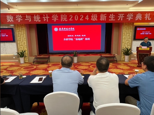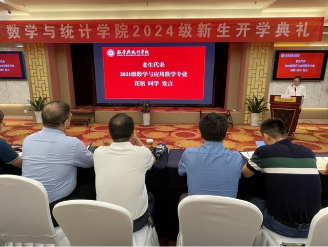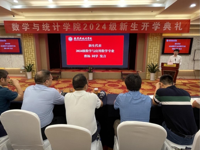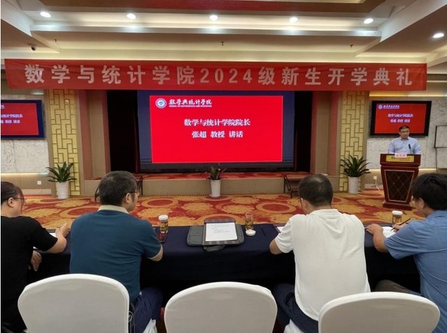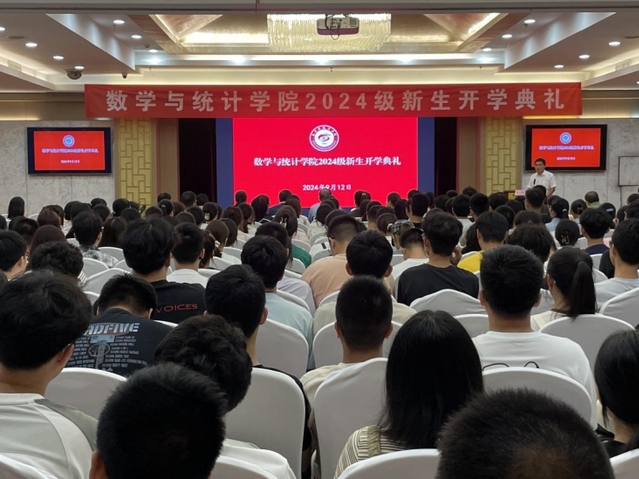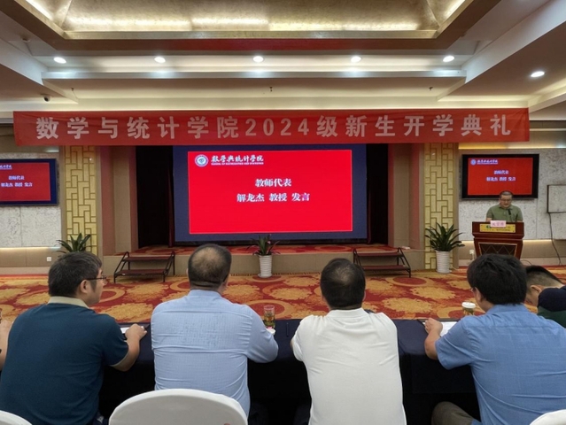 9月12日下午,数学与统计学院2024级新生开学典礼在汉园宾馆报告厅举行。学院领导班子成员,各系主任及专业相关教师,2024级新生班主任,全体辅导员,老生代表以及2024级本科新生参加典礼。典礼由学院党委副书记谭建东主持。