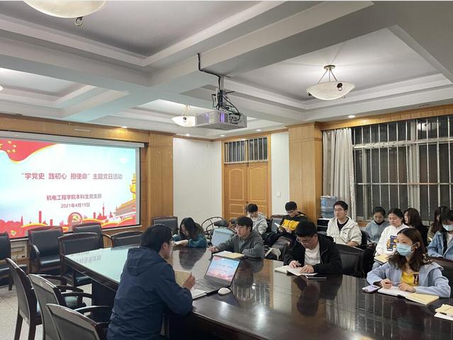 为深入学习习近平总书记在党史学习教育动员大会上发表的重要讲话精神,贯彻落实习近平总书记学史明理、学史增信、学史崇德、学史力行的要求,4月19日晚,机电工程学院本科生党支部于12#606A会议室组织开展“学党史 践初心 担使命”主题党日活动。