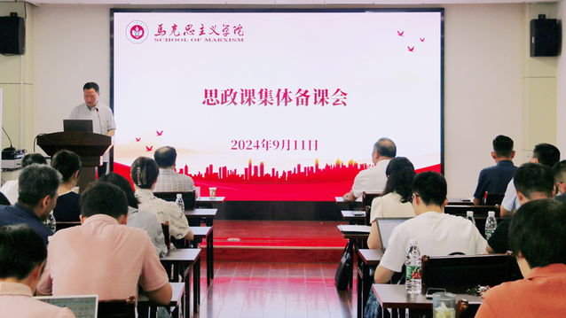为深入贯彻习近平总书记关于思政课建设的重要指示,积极推进党的二十届三中全会精神融入思政课教学,9月11日下午,马克思主义学院组织新学期第一次思想政治理论课集体备课会。校党委书记方忠,校长周汝光,校党委常委、宣传部部长孟召学,校教务部主要负责同志及马克思主义学院领导班子成员,全体思想政治理论课教师参加备课会。