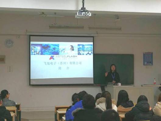 11月24日下午2:30,飞旭电子(苏州)有限公司前来机电工程学院开展校园宣讲,宣讲会在22#401教室举行。飞旭电子(苏州)有限公司人事行政总监史玉玉、人事主管李慧做招聘宣讲,机电学院党委副书记梁宝文、电气学院党委副书记钱进、机电学院团委书记刘萌、就业辅导员丁永剑以及机电、电气学院15级、16级部分同学参加了本次校园宣讲。