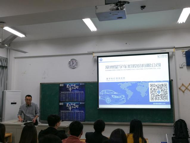 10月23日晚上6:30,常州星宇车灯股份有限公司前来机电工程学院开展校园宣讲,宣讲会在12#306C教室举行。常州星宇车灯股份有限公司技术中心设计部主任赵统洋、人力资源部李晓娟参与招聘宣讲,机电工程学院团委书记刘萌老师、就业辅导员丁永剑老师以及部分19届毕业生参加了本次校园宣讲。