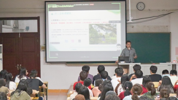 于战宇从生活中面临的困惑、焦虑、困难等方面的案例导入,就“你有过相似的困惑吗?又或者,最近有什么事让你心烦吗?”与同学们展开了热烈交流。讲座围绕心理健康、认知赋能、情绪赋能、行为赋能四个方面展开。首先用一则漫画让同学们感受了每个人都有不为人知的困境,详细阐述了心理健康的概念,用图表讲述了心理健康状态的分区、不同阶段的特征,带着同学们一起学习如何觉察自己面临的不同程度心理问题和如何应对,如何进行认知调整。从认知赋能、情绪赋能、行为赋能三个方面的理论讲述和丰富的案例分析让大家全面提升了自我认知的能力,认识到整理好自己的认知和情绪可以帮助大家更好的从容面对学习生活中各种挑战,通过积极的行动增强生命的力量。最后他向同学们介绍了各类心理支持资源,鼓励同学们遇到心理问题时及时寻求家人、老师、同学以及专业人士的帮助,保持自尊自信、乐观向上、理性平和的健康心态,在未来的学习生活中遇到更好的自己。