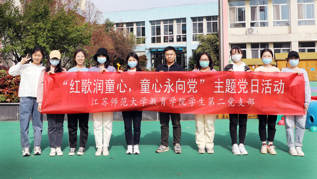 4月28日下午,教育学院学生二支部全体党员赴徐州第二实验幼儿园开展“红歌润童心,童心永向党”主题党日活动。本次活动面向幼儿园大班的小朋友,支部党员王雪雪担任主讲,其余党员负责协助工作。