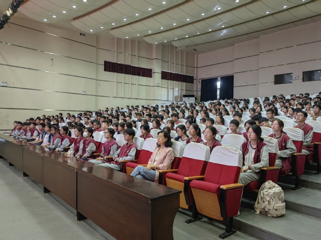 省科学教育传播中心谢飞主任、东南大学自动化学院陈夕松教授、高中部执行校长王瑞、教师发展处处长陈庆来、课程处处长朱学恩、校办副主任石飞飞、高二年级主任刘兴文出席讲座。本次活动由高中部副校长胡径萍主持,伟长书院和高中部共400余名师生参加了讲座。