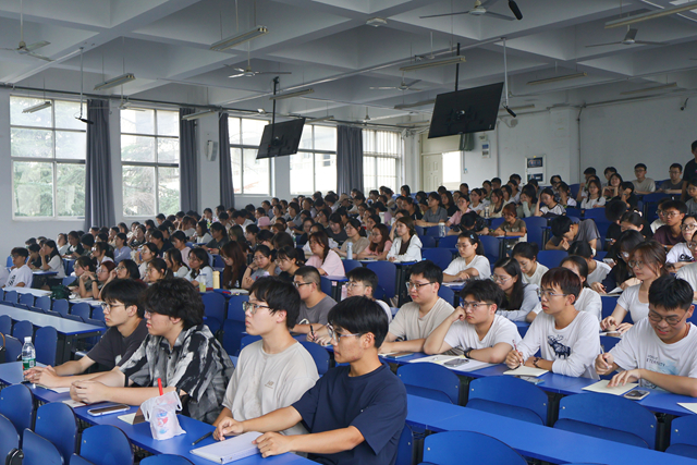 杨教授对学院新生满怀期待,从长者的角度热情分享他治学从教的经验心得,殷殷嘱盼所有新生要立志高远、勤奋务实,既要树立明确的人生奋斗目标,做有理想、有情怀的大学生,又要用心钻研、深耕细犁,在自己喜欢的领域立的稳、拓的深、行的远,才能不负期待、有所成就。杨教授对新生寄语,希望2024级全体新生认真践行“崇德厚学,励志敏行”的校训和“守正出新,坚志有为”的校园精神,努力成为担当民族复兴大任的时代新人和卓越人才。