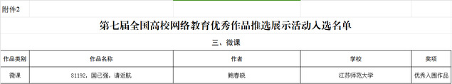 近日,由教育部思想政治工作司、中央网信办网络社会工作局主办的第七届全国大学生网络文化节和全国高校网络教育优秀作品推选展示活动落下帷幕。我院党委秘书鲍春晓的微课作品《81192,国已强,请返航》荣获第七届“全国高校网络教育优秀作品推选展示活动” 优秀入围作品。