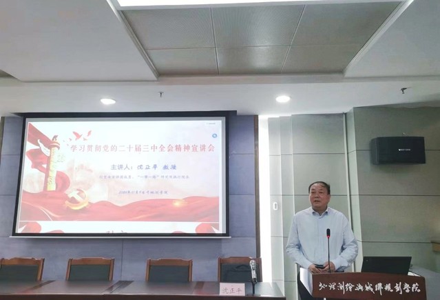 报告会上,沈正平以“凝聚改革共识 奏响发展强音”为题,围绕习近平总书记在党的二十届三中全会上的重要讲话和全会《决定》,从总体把握党的二十届三中全会的基本概况及重大意义、深刻把握进一步全面深化改革的总体要求、深刻把握进一步全面深化改革的重大举措、深刻把握抓好全会精神贯彻落实的基本要求等方面进行全面宣讲和深入解读。他指出,党的二十届三中全会对教育领域的全面深化改革做出了系统而深刻的部署,全院上下要提高政治站位,将学习贯彻全会精神与学院从严治党、学科建设、人才培养、科学研究、师资队伍建设等中心工作紧密结合起来,切实把《决定》战略部署真正转化为有嚼劲、改革味的“干货”举措,确保学院各项工作沿着正确的轨道前进。