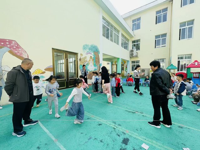 活动当天,幼儿园内彩旗飘扬,气氛热烈。小班组的活动以一曲热门的广场舞拉开序幕,孩子们和爷爷奶奶们手拉手,随着欢快的音乐节奏翩翩起舞,场面既温馨又欢乐。孩子们的笑容如阳光般灿烂,爷爷奶奶们的眼中也闪烁着幸福的光芒。接着,孩子们为爷爷奶奶们表演了精心准备的节目,有的唱歌,有的跳舞,还有的朗诵诗歌,赢得了在场观众的阵阵掌声。随后,爷爷奶奶们展示了他们童年的游戏,如掷石子、踢毽子、摔元宝等,孩子们兴致勃勃地跟着学习,体验了一把“复古”的乐趣。
