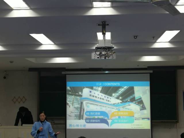 宣讲会开始,张靖主管播放了富誉电子的宣传纪录片,让现场同学简要了解到公司发展现状和方向。富誉电子科技(淮安)有限公司是富士康淮安分公司