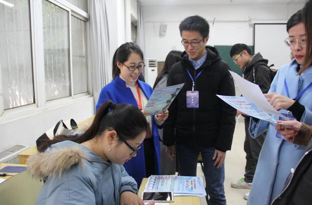 招聘会现场,参展单位通过设立宣传展架、派发宣传资料、面对面洽谈等多种形式向同学们详细介绍单位的基本情况、招聘要求以及福利待遇,并耐心细致地进行现场答疑解惑。参加招聘的同学积极与招聘单位进行沟通交流,主动了解用人单位的情况。