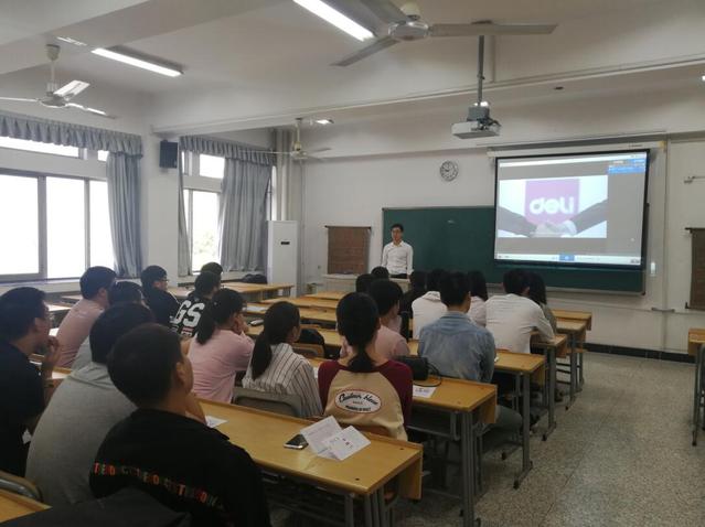 9月27日上午8:30,得力集团前来机电工程学院开展校园宣讲会,宣讲会在12#305C教室举行。得力集团人力资源部余亚群主管做招聘宣讲,机电工程学院就业辅导员丁永剑以及部分15级同学参加了本次宣讲会。