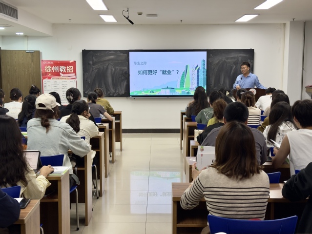 主讲人首先概述了当前毕业生面临的六大主要发展方向,包括考研、考公、考编、企业就业、创业以及自主就业,并着重介绍了教师岗位的就业形势及未来发展趋势,使参会学生对当前的就业市场有了更为清晰的认识。主讲人深入解读了社会招聘与校园招聘在教师招聘领域的考情及政策要求,通过对比分析,阐述了两者在招聘要求、选拔标准等方面的不同侧重点。为了更具体地说明教师招聘市场的需求动态,主讲人通过真实数据,详细剖析了徐州等地教师社会招聘的历年报录比。同时,结合具体实例,逐一阐述了校园招聘的各项要求及考试流程,为同学们提供了详尽的备考参考。
