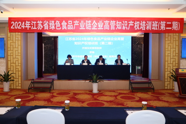 2024年10月15日,江苏省2024年绿色食品产业链企业高管知识产权培训班(第二期)顺利举行。本期培训由江苏省知识产权局主办,徐州市市场监督管理局(知识产权局)协办,江苏省知识产权培训(江苏师范大学)基地和江苏师范大学法学院承办。徐州市市场监督管理局(知识产权局)副局长罗艳、江苏师范大学法学院院长菅从进和江苏师范大学法学院实践法学教研室主任唐其宝出席开班仪式。全省绿色食品产业链企业100余位企业高管参加开班仪式及培训。江苏师范大学法学院教授、知识产权发展研究院执行院长张春艳主持开班仪式。