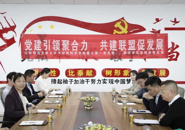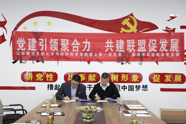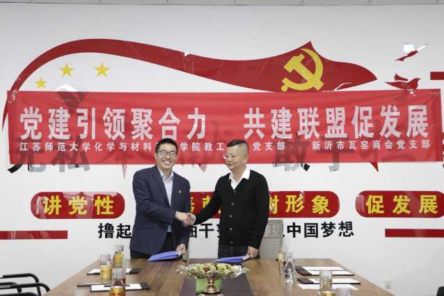 为积极响应省委组织部和省委教育工委关于“百所高校对接千个产业链党建联盟”行动号召,进一步加强基层党组织建设,以党建引领推动产、学、研高效融合汇聚,积极探索人才培养新模式,10月15日,化学与材料科学学院教工第一党支部与新沂市瓦窑商会党支部签署共建协议。新沂市瓦窑镇党委副书记刘姜、新沂市瓦窑商会会长郭威、新沂市瓦窑商会党支部书记李勇、化学与材料科学学院党委书记吴晨、教工第一党支部书记姜波及瓦窑商会党支部代表、学院教师党员代表参加签约仪式。仪式由新沂市瓦窑镇党委刘姜副书记主持。