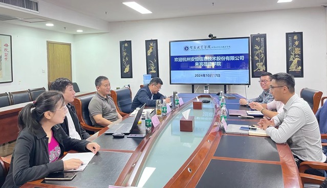 10月17日,杭州安恒信息技术股份有限公司曹辉、魏赛、张超一行莅临智慧教育学院(计算机科学与技术学院)商洽合作。学院党委书记周显洋、院长董永权、计算机科学与技术专业负责人刘亚丽教授、计算机科学与技术系主任支强副教授参加活动。