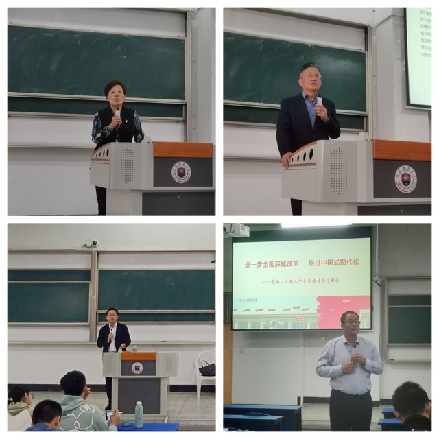 校党委研究生工作部部长王本贤以《进一步全面深化改革 推进中国式现代化》为题,从怎么看、怎么干、怎么抓三方面重点解读了习近平总书记在中共二十届三中全会上的重要讲话精神,希望全体学员不仅在学术上有所成就,更能在品德修养、社会责任感等方面全面发展,成长为能够担当民族复兴大任的时代新人。