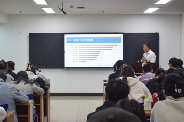讲座伊始,周显洋首先进行了简要的自我介绍,并结合自身的就业经历,向同学们表达了深切的关心与慰问。他鼓励同学们在求职过程中保持积极的心态,勇敢面对挑战。随后,周书记分享了当前职场新生代和雇主所关注的能力,以及获得offer的主要因素,帮助同学们更全面地了解就业市场的现状。