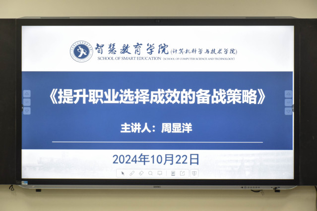 为全面贯彻落实关于高校毕业生就业工作的决策部署,推动毕业生高质量就业,切实提升研究生就业竞争力,智慧教育学院(计算机科学与技术学院)于2024年10月22日晚,在静远楼906会议室举办了一场题为《提升职业选择成效的备战策略》的2025届毕业研究生公益讲座。此次讲座由院党委书记周显洋主讲,研究生辅导员段阳阳老师及我校2025届部分毕业研究生参加了此次活动。